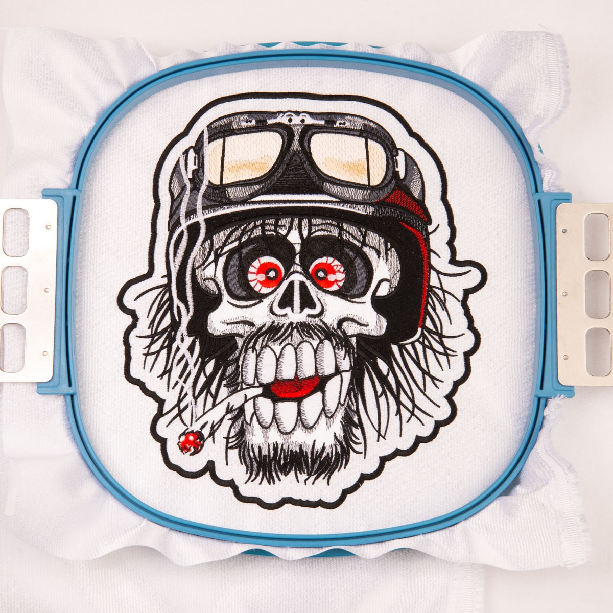 Réalisation d'une broderie un peu "déjantée" mais très bien réalisée pour un client particulier biker qui souhaitait apporter une touche de personnalisation à son style. ;)